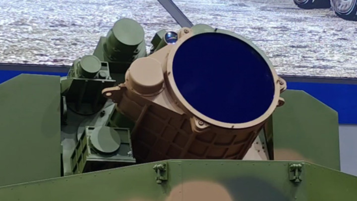 该型电子战车以8×8中型轮式装甲为底盘,搭载了一台能输出10~20千瓦功率的激光发射装置。