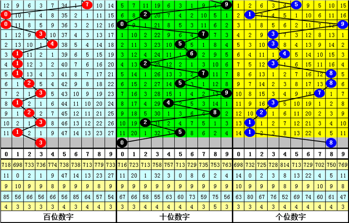 其中,号码0-9开出次数分别为:号码0开出2次、1开出6次、2开出5次、3开出3次、4开出2次、5开出2次、6开出2次、7开出3次、8开出2次、9开出3次。